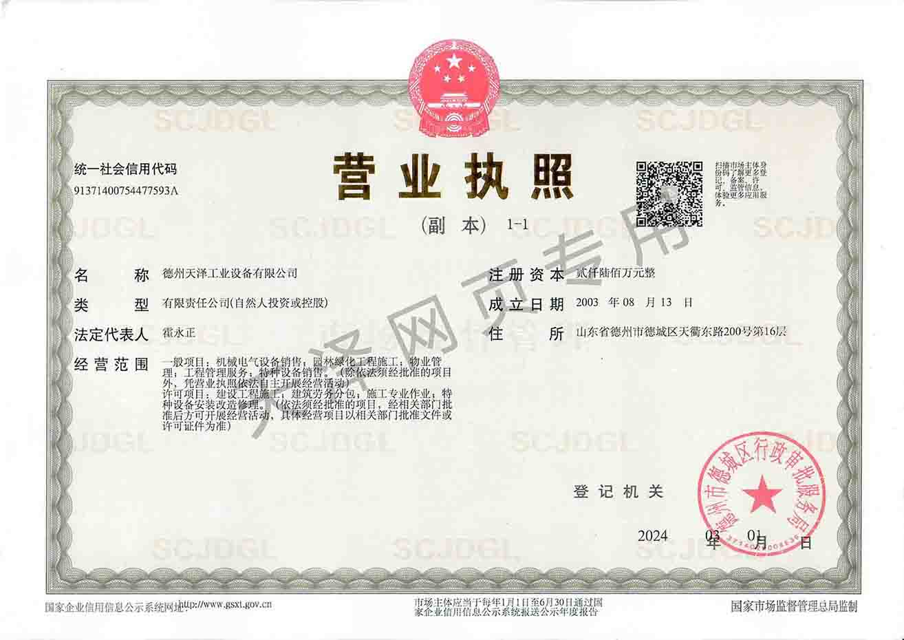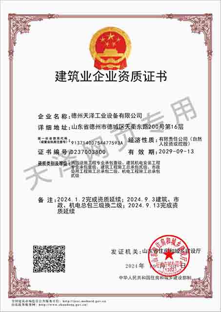 德州天澤工業(yè)設(shè)備有限公司成立于2003年(前身為德州天元集團(tuán)天明工業(yè)設(shè)備安裝公司),經(jīng)過20多年的發(fā)展,現(xiàn)成長(zhǎng)為擁有職工600余人,各類專業(yè)技術(shù)人員近300余人,年生產(chǎn)能力兩億元以上,以建筑機(jī)電安裝工程、消防設(shè)施安裝工程施工為主,集建筑工程施工、市政工程施工、建筑智能化工程施工、園林綠化工程施工、工程管理服務(wù)、物業(yè)管理、電氣機(jī)械設(shè)備銷售等多元化經(jīng)營(yíng)于一體的綜合型企業(yè)。2005年,企業(yè)按照國(guó)際標(biāo)準(zhǔn)建立的質(zhì)量管理體系,通過了ISO質(zhì)量管理體系認(rèn)證、環(huán)境管理體系認(rèn)證、職業(yè)健康安全管理體系認(rèn)證。施工工程遍布山東、河北、四川、江蘇等地,最具代表性的工程有:山東省德州市百腦匯資訊廣場(chǎng)機(jī)電安裝工程、德州經(jīng)濟(jì)開發(fā)區(qū)天元大廈機(jī)電安裝工程、陵城區(qū)人民醫(yī)院機(jī)電安裝工程、德州金魯班大廈機(jī)電安裝工程、河北故城金辰小區(qū)機(jī)電安裝工程、北川地震災(zāi)后援建工程等。多年來,公司始終堅(jiān)持“以人為本,建精品工程,創(chuàng)行業(yè)品牌”的經(jīng)營(yíng)理念,先后榮獲省(市)級(jí)泰山杯、天府杯、魯安杯等獎(jiǎng)項(xiàng),申報(bào)各種功法、多項(xiàng)專利。